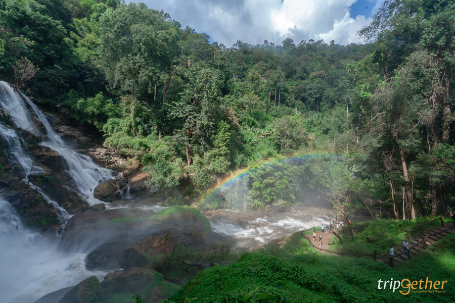 ยิ่งวันไหนที่แดดดีๆ เราจะเห็นสายรุ้งพาดผ่านหน้าน้ำตกด้วยนะ และแน่นอนเราคือผู้โชคดีจ้า