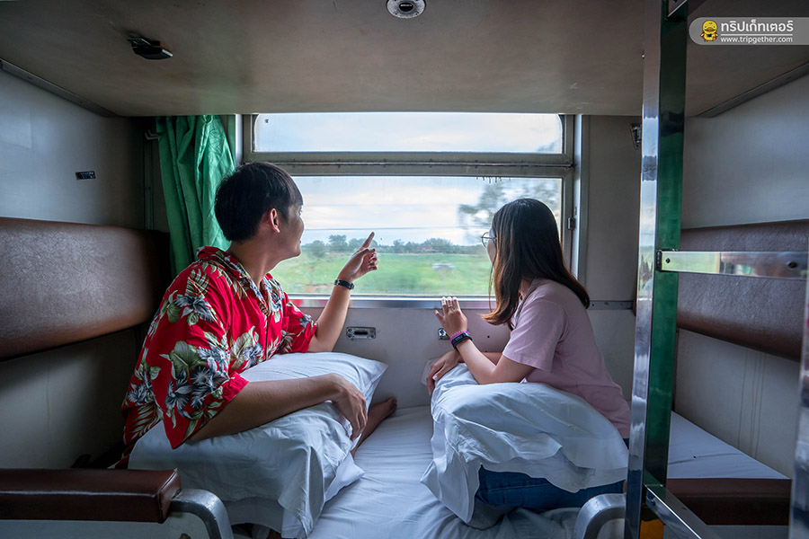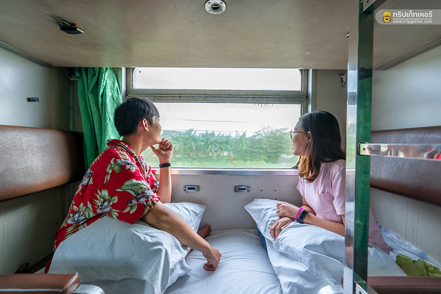 บรรยากาศภายในรถไฟก็ไม่แย่อย่างที่เคยได้ยินใครหลายๆ คนพูดมาครับ ซึ่งขบวนที่ผมจองจะเป็นรถไฟตู้นอน ซึ่งสามารถนอน 2 คนได้แบบสบายๆ ถ้าเข้ามาตอนที่ขบวนยังไม่ออกจะเป็นเบาะสำหรับนั่งหันหน้าเข้าหากัน แต่พอขบวนออกเดินทางสักพักจะมีเจ้าหน้าที่มาปรับเบาะนั่งเป็นที่นอนให้ แถมยังมี หมอน ผ้าห่ม และผ้าปูที่นอนสะอาดๆ ให้อีกด้วย ขอบอกไว้ก่อนเลยว่าให้เก็บตั๋วรถไฟไว้ให้ดีๆ เพราะจะมีเจ้าหน้าที่เดินมาตรวจตั๋ว ใครทำหายโดนเชิญลงสถานีหน้าไม่รู้ด้วยนะครับ^^