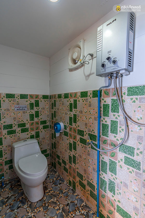 และยังมีห้องน้ำส่วนตัวพร้อมเครื่องทำน้ำอุ่นระบบแก๊สไว้ให้อีกด้วย