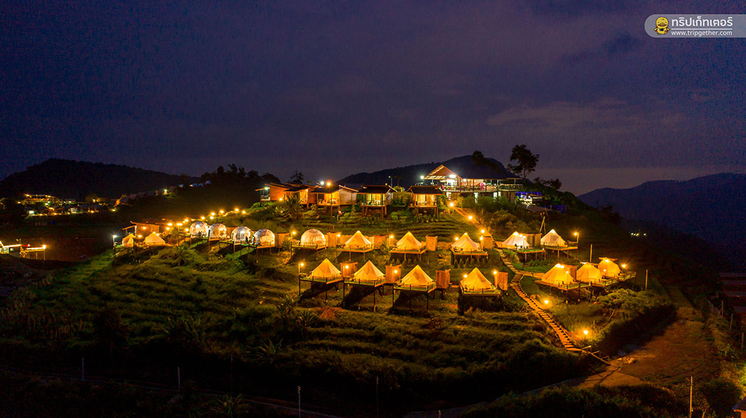 บรรยากาศยามค่ำคืนของ ม่อนสายลม ที่จะได้เห็นแสงไฟระยิบระยับไปทั่วทั้งดอย
