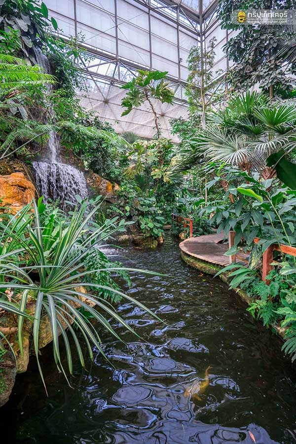 และยังมี เรือนแสดงไม้ป่าดิบชื้น ที่มีต้นไม้สูงใหญ่ให้ความรู้สึกเหมือนเดินอยู่ในป่าและมีน้ำตกจำลองให้ถ่ายรูปกันอีกด้วย