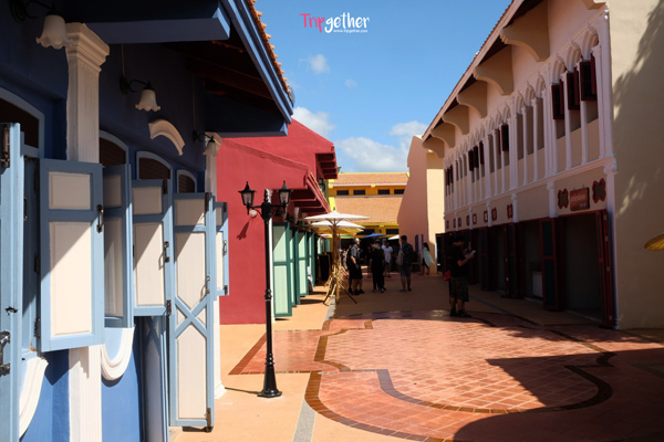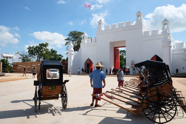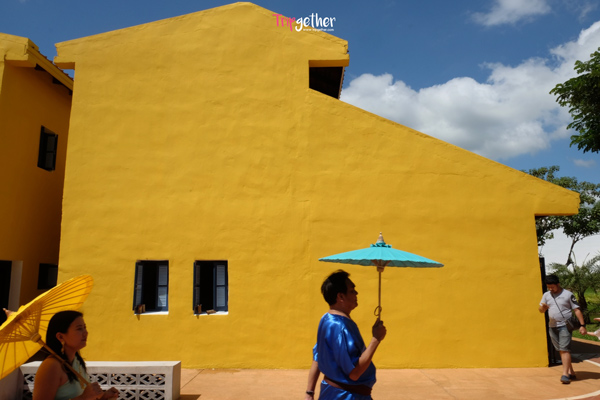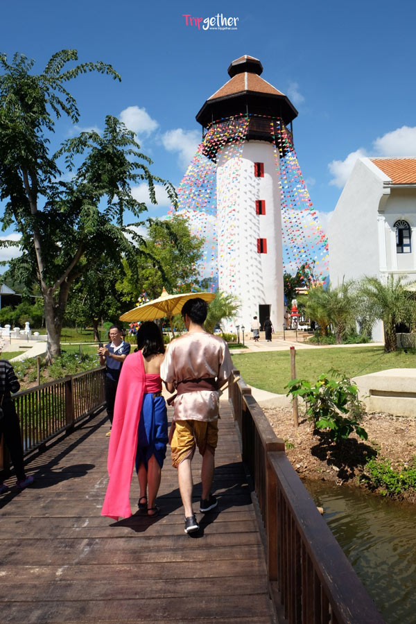 ด้านหน้าข้างเข้าเมืองจะเป็นกำแพงสูง มีประตูบานใหญ่มาก ให้เราได้รู้สึกเหมือนเดินผ่านเข้าเมืองหลวงตามในหนังที่เราเคยเห็น บรรยากาศภายในเมืองก็มีทั้งตลาด ของกิน ของฝาก สไตล์ไทยๆ ให้เราได้ชิมกันตลอดทาง