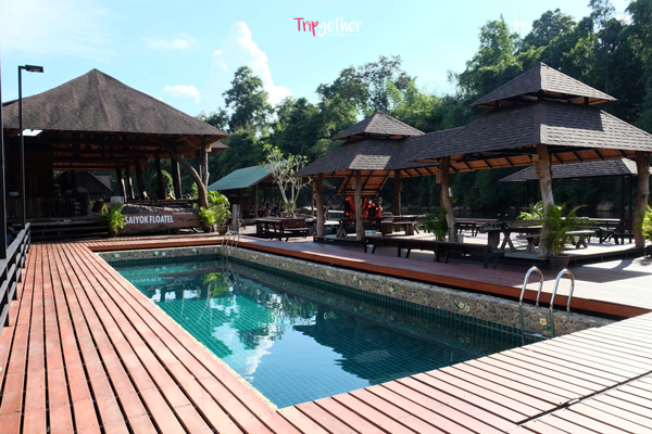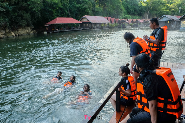 สำหรับที่พักของเราในคืนนี้มีชื่อว่า “ไทรโยค โฟลท เทล รีสอร์ท” ที่สอร์ทที่ตั้งอยู่ริมแม่น้ำแคว ในเขตอุทยานฯน้ำตกไทรโยคใหญ่ บรรยากาศที่นี่จึงเงียบสงบ และเป็นส่วนตัวสุดๆ เพราะที่พักของที่จะรับเฉพาะกลุ่ม 10 คนขึ้นไปเท่านั้น แต่ราคาจะจ่ายเป็นหัวคนละ 1200 บาท ซึ่งจะรวมอาหาร 2 มื้อ เช้า+เย็น และยังมีกิจกรรมล่องแพ พาชมน้ำตกอีกด้วย ราคานี้ถือว่าคุ้มสุดๆ (สนใจที่พักคลิ๊กที่นี่)