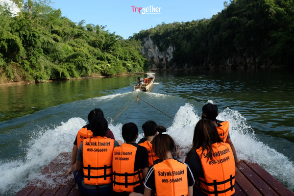 และเมื่อถึงเวลาที่นัดหมายทางรีสอร์ทจะพาเราล่องแพ ชมธรรมชาติสองฝั่งแม่น้ำ ที่ผ่านบริเวณภุเขาหินปูนรูปร่างแปลกตา เพื่อไปยังน้ำตกไทรโยคใหญ่
