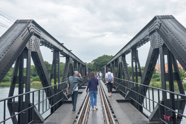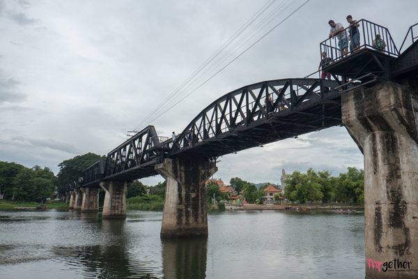 ทริปนี้เราเดินทางด้วยรถส่วนตัว เวลาเดินทางกันประมาณชั่วโมงนิดๆ ก็มาถึงสะพานข้ามแม่น้ำแคว เลยเดินเล่น ถ่ายรูปกันสักหน่อย ว่ามาเรา “มาถึงแล้วจ้า!!” สำหรับสะพานข้ามแม่น้ำแคว สร้างขึ้นตั้งแต่สมัยสงครามโลกครั้งที่ 2 ซึ่งชาวญี่ปุ่นได้เกณฑ์เชลยทั้งอังกฤษ ออลันดา ฯลฯ มาสร้างสะพานแห่งนี้ อีกทั้งสะพานข้ามแม่น้ำแควยังเป็นช่วงหนึ่งในสร้างเส้นทางรถไฟสายมรณะที่ยากจะลำบากที่สุด จนมีเชลยเสียชีวิตเป็นจำนวนมาก ประวัติคร่าวๆ ก็ประมาณนี้นะฮะ