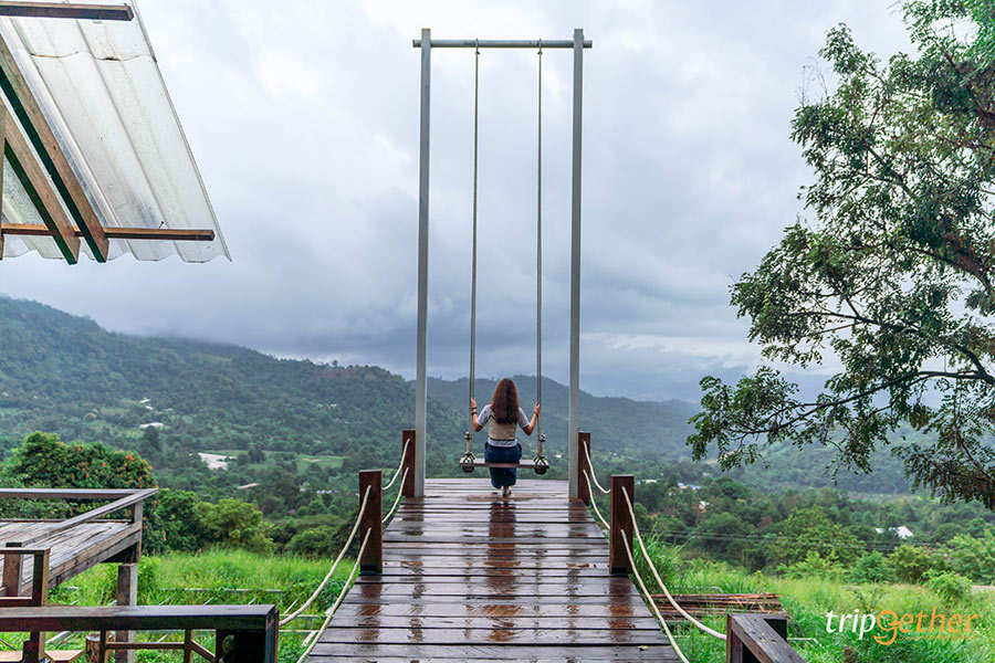 หรือจะนั่งชิงช้าชิลล์ๆ ก็ได้ มีวิวฉากหลังเป็นภูเขา รับประกันว่ารูปออกมาสวยแน่นอน