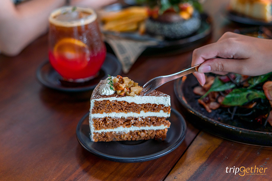 มาต่อกันที่เมนูของหวานดีกว่า เป็นเมนูเค้กทั้งหมด 2 รสชาติด้วยกัน ชิ้นแรกเป็น เค้กแครอท และชิ้นที่สองเป็น คาราเมลชีสเค้ก ทั้งสองชิ้นราคา 90 บาท บอกเลยว่าเค้กที่นี่ก็เป็นที่นิยมไม่แพ้เมนูกาแฟ เป็นเค้กเนื้อแน่น จัดเต็มทั้งครีมและรสชาติหวานฉ่ำ เอาใจสายหวานสุดๆ