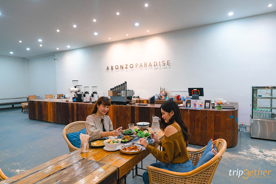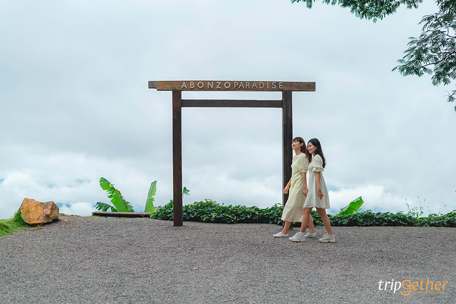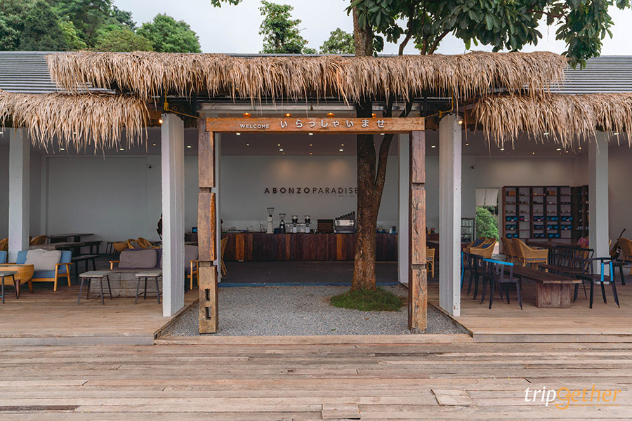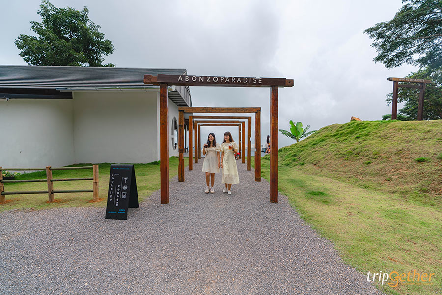หลังจากกินมื้อเช้ากันเสร็จเรียบร้อย เราก็มาเดินเล่นถ่ายรูปในบริเวณคาเฟ่กันต่อ ในส่วนของคาเฟ่ Abonzo Coffee ก็เป็นคาเฟ่สไตล์เปิดโล่ง สร้างด้วยวัสดุจากธรรมชาติ ตกแต่งผสมผสานสไตล์ญี่ปุ่นหน่อยๆ มีโซนที่นั่งทั้งในตัวอาคารและด้านนอกบริเวณริมระเบียง นั่งชมวิวขุนเขาได้แบบชิลล์ๆ นอกจากนี้ยังมีมุมถ่ายรูปทั่วบริเวณ