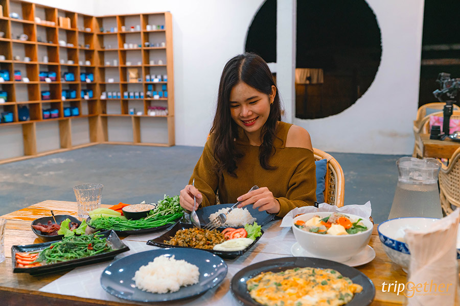 หลังจากเล่นน้ำกันจนเหนื่อย เราก็อาบน้ำเปลี่ยนเสื้อผ้ามากินอาหารเย็นกันต่อที่บริเวณคาเฟ่ของทางที่พักได้เลย โดยมื้อเย็นของเราวันนี้เลือกเป็นอาข่าเซ็ต เป็นเซ็ตอาหารแนวโลคอลทั้งหมด 7 เมนู เสิร์ฟพร้อมข้าวสวยร้อนๆ และน้ำเปล่าเย็นชื่นใจ ทั้งเซ็ตนี้ราคา 1,000 บาท หรือใครอยากกินชาบูร้อนๆ ทางที่พักก็มีให้บริการเช่นเดียวกัน ราคาเท่ากับอาข่าเซ็ตเลย