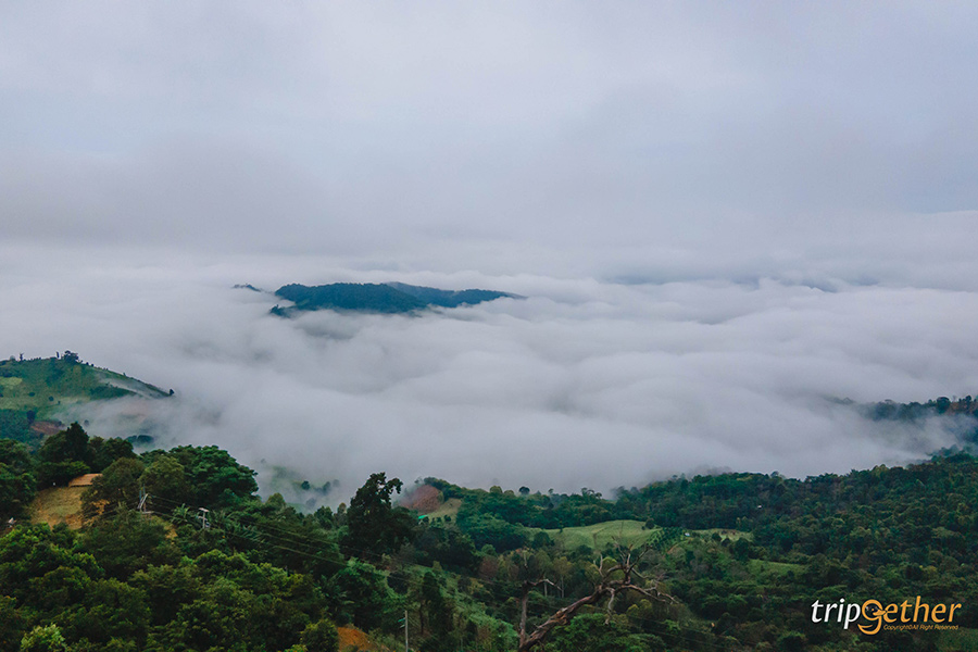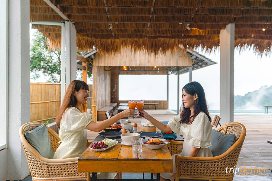 กินอาหารเช้าท่ามกลางทะเลหมอกและอากาศเย็นสบาย เป็นบรรยากาศที่ไม่สามารถหาในเมืองได้เลย