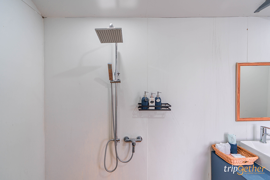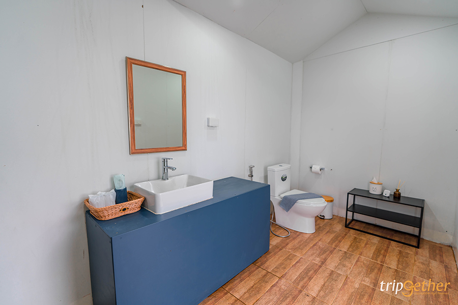 ห้องน้ำของที่พักกว้างขวางมาก แบ่งแยกบริเวณโซนเปียกและโซนแห้งอย่างชัดเจน มีเครื่องทำน้ำอุ่น และของใช้ในห้องน้ำต่างๆ เตรียมไว้ให้อย่างครบครัน