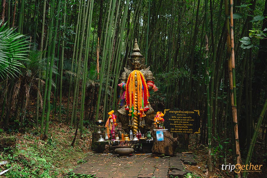 ตรงทางขึ้นมีประดิษฐานท้าวเวสสุวรรณให้กราบไหว้กันด้วย