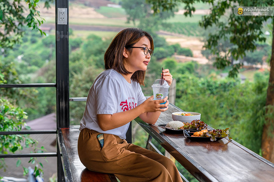 นั่งกินพร้อมมองวิวเพลินๆ แถมยังมีนักท่องเที่ยวที่มาล่องแก่งผ่านให้เราได้ชมตลอดทั้งวันเลยนะ