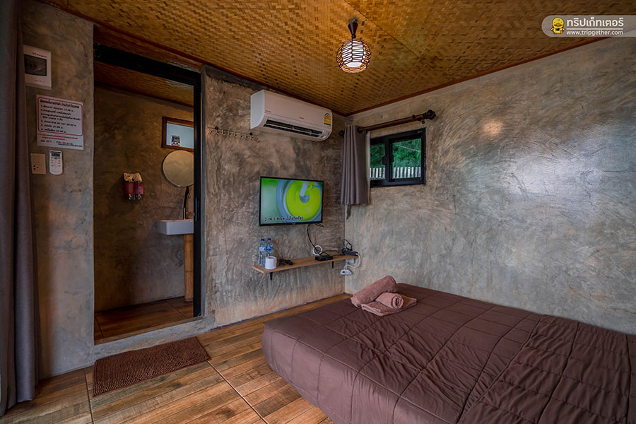 ภายในตัว บ้านชมวิว มีพื้นที่พอเหมาะสำหรับการเข้าพัก 2 – 3 คน ภายในห้องตกแต่งด้วยสไตล์ลอฟท์ผนังปูนเปลือยตัดกับเพดานที่ทำจากไม้ไผ่สานได้เข้ากันอย่างลงตัว พร้อมที่นอนสำหรับนอน 2 คน และยังมีสิ่งอำนวยความสะดวกครบครันไปว่าจะเป็น เครื่องปรับอากาศ แอลซีดีทีวีรับสัญญาณดาวเทียม กาน้ำร้อน พัดลม และปลั๊กพ่วง