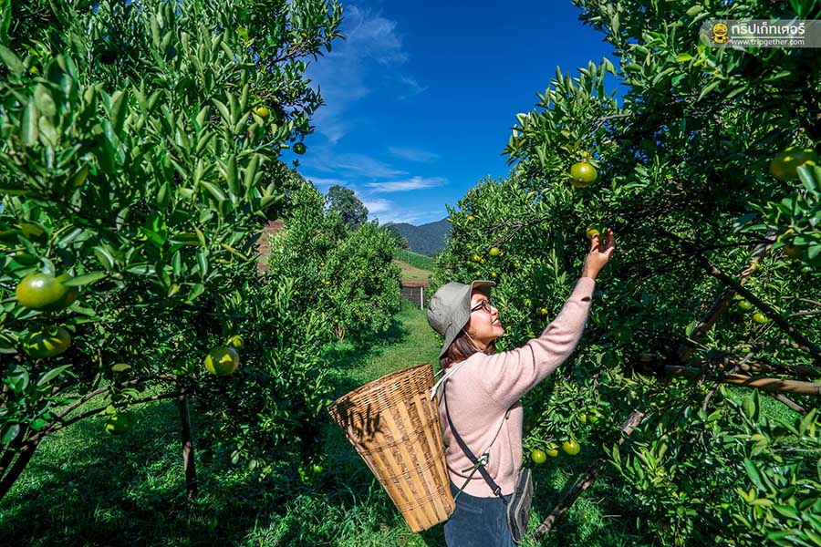 ในช่วงเย็น เวลา 16.30 – 17.30 น. ทางที่พักยังมีกิจกรรม พาเที่ยวชมสวนส้มสายน้ำผึ้ง (กิจกรรมรวมอยู่ในราคาห้องพักแล้ว) ซึ่งจะมีรถของทางที่พักพาเราไปใช้เวลาเดินทางประมาน 10 นาที