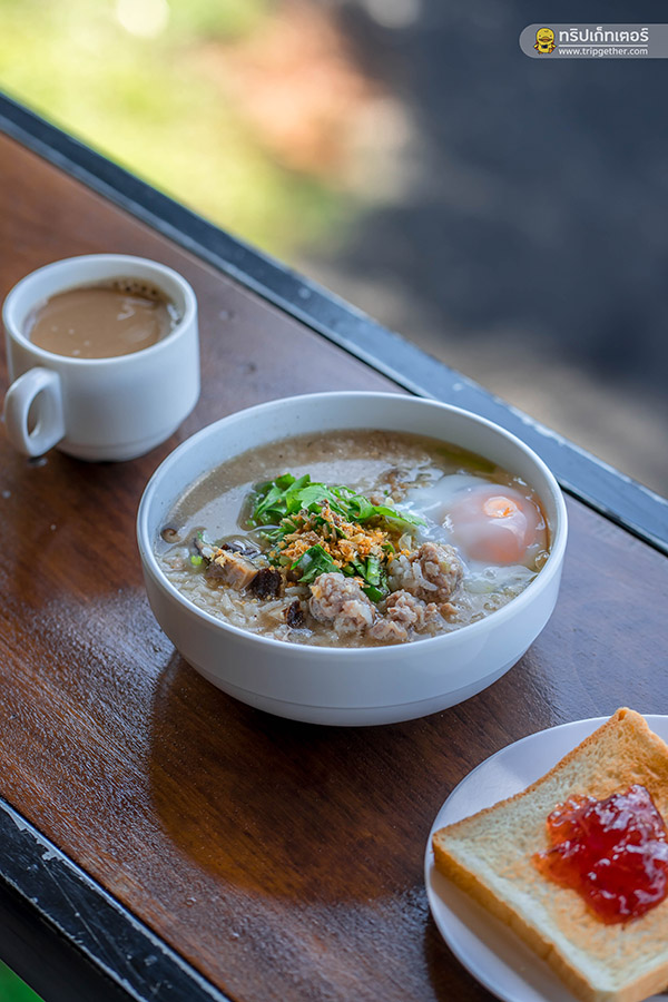 และแล้วก็ได้เวลากลับถึงที่พัก กลับมาถึงก็ไม่รอช้ารีบไปกินอาหารเช้าของทางที่พักที่จัดไว้เป็น ข้าวต้มแบบบุฟเฟ่ต์ ที่โซนห้องอาหาร นอกจากข้าวต้มแล้วยังมีปังปิ้งและไข่ลวกอีกด้วยนะ