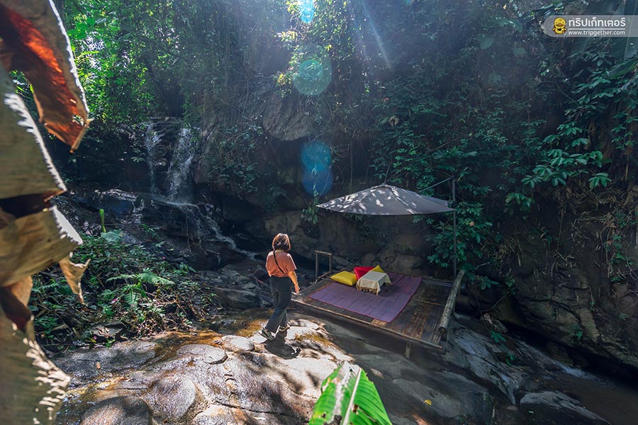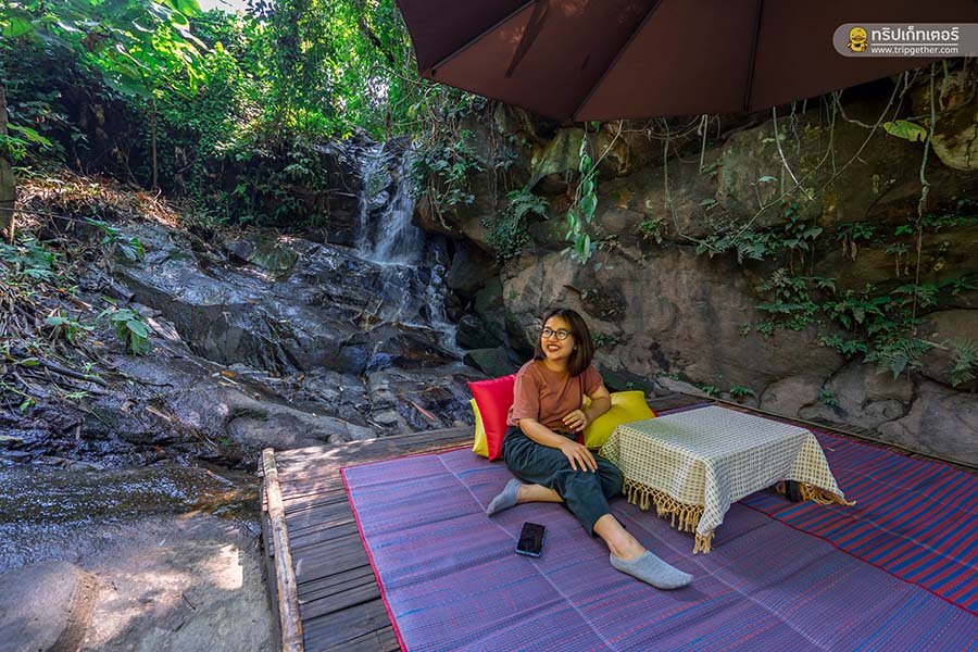 ก่อนเช็คเอ้าท์เราก็ไม่พลาดที่จะลงไปนั่งชิลล์กันที่ น้ำตกบ้านว้าวด้า ที่จะต้องเดินลงไปสักหน่อย บรรยากาศรอบๆ เต็มไปด้วยความร่มรื่น แถมยังมีที่นั่งไม้ไผ่ไว้ให้นั่งชิลล์อีกด้วย นั่งเพลินจนเกือบลืมเวลาเช็คเอ้าท์เลยค่ะ