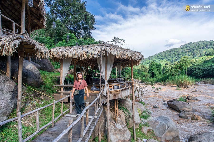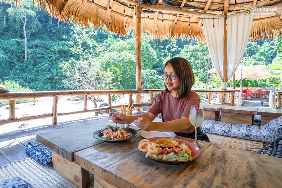 ภายในตัวร้านมีที่นั่งให้เลือกหลายหลายโซน ทุกโซนสามารถมองเห็นวิวลำธารแก่งกื้ดได้อย่างเต็มตา และยังได้ฟังเสียงน้ำไหลเพลินๆ อีกด้วย