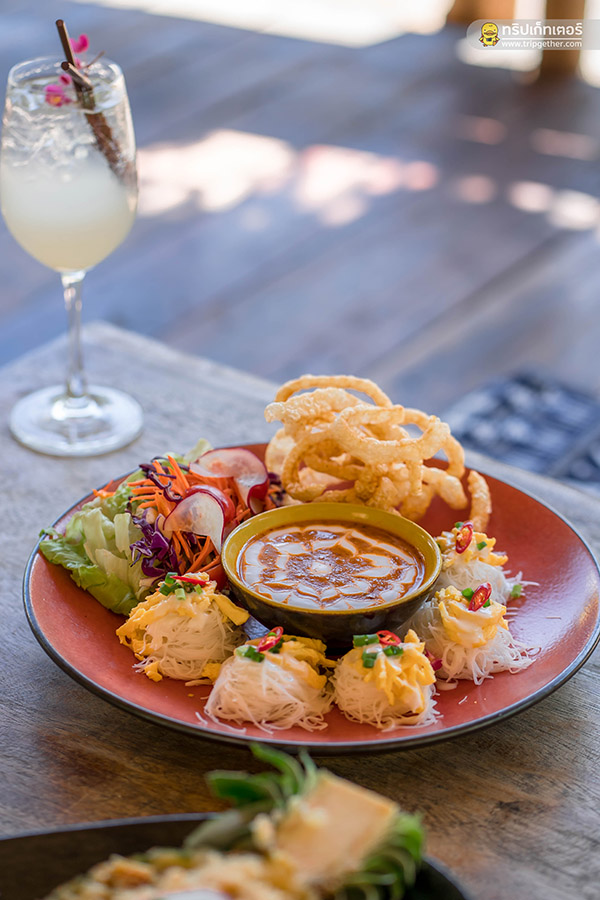 ไม่รอช้ารีบสั่งเมนูอร่อยมากินซึ่งส่วนมากเมนูของที่นี่จะเป็นอาหารไทยมีทั้ง ส้มตำ ราคา 80 บาทและหมี่กะทิ ราคา 200 บาท ที่ Recommend เลยว่ามาแล้วจะต้องสั่งมากินให้ได้