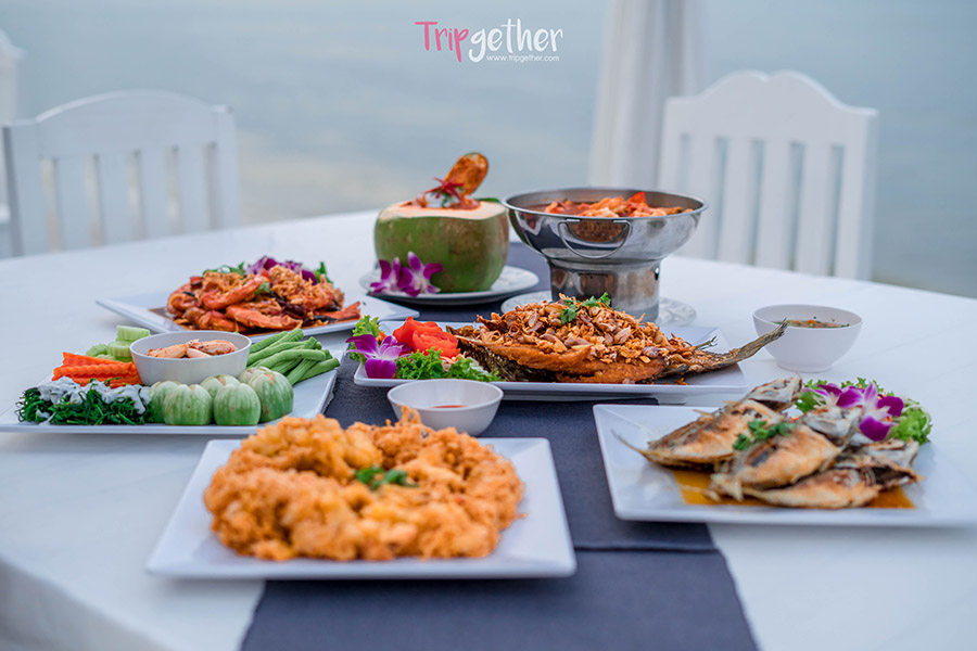 มื้อเย็นก็ไม่ต้องออกไปที่ไหนไกลเพราะ ปราณบุรี ดีไลท์ รีสอร์ท มีร้านอาหารที่จัดเต็มทั้งปริมาณและรสชาติอยู่ทางด้านหน้า ซึ่งคนนอกที่ไม่ได้พักก็สามารถเข้ามาทานอาหารที่นี่ได้อีกด้วย และแน่นอนมาทะเลทั้งทีมื้อเย็นวันนี้จะเป็นอะไรไปไม่ได้นอกจากอาหารทะเลสดๆ ที่ทางรีสอร์ทมีไว้ให้บริการไม่ว่าจะเป็น