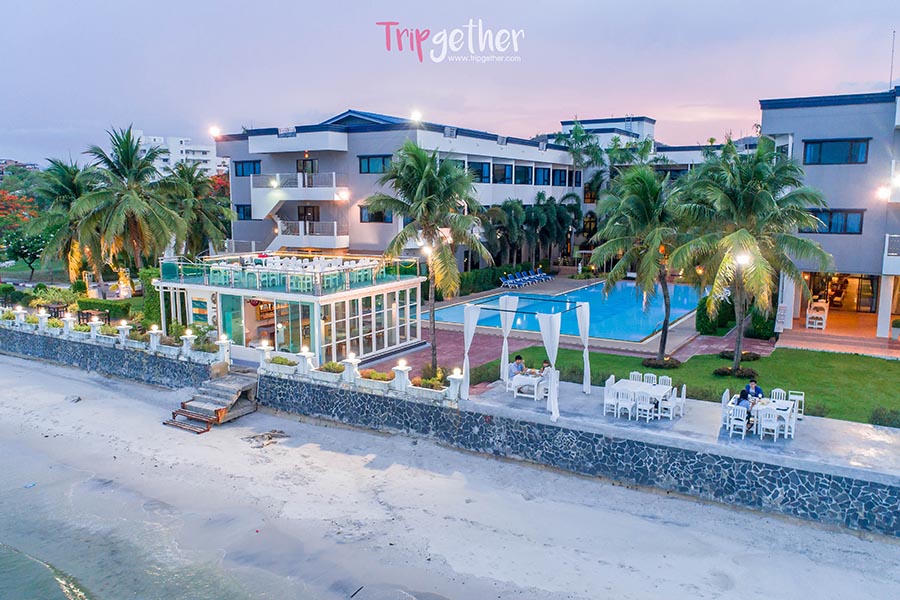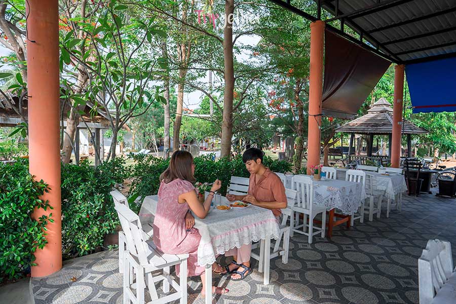 สำหรับที่นั่งก็สามารถเลือกได้ว่าจะนั่งในบริเวณร้านอาหารของรีสอร์ทหรือยกมานั่งกินแบบฟินๆ ที่ริมทะเล