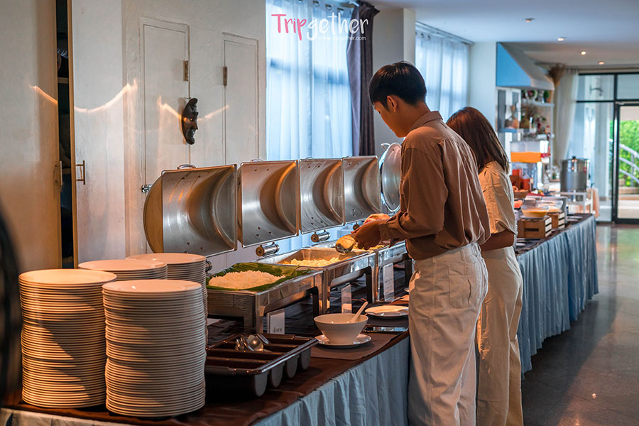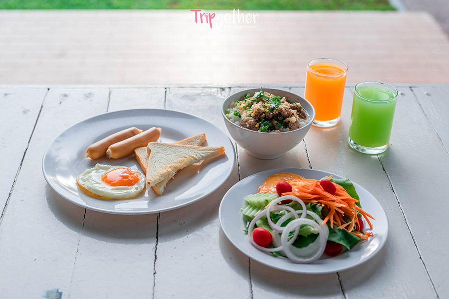 เริ่มต้นเช้าวันใหม่กันที่ นาวีภิรมย์ บรรยากาศตอนเช้าก็ยังดี๊ดี มีเสียงคลื่นให้เราได้ฟัง ก่อนที่จะออกไปเดินทางกันต่อเราเลยต้องมาเพิ่มพลังกับมื้อเช้าของทางโรงแรมกันสักหน่อย อาหารเย็นที่ว่าอร่อยแล้ว อาหารเช้าก็ยังอร่อยไม่แพ้กัน ซึ่งอาหารมื้อเช้าก็จัดเต็มไปด้วยเมนูแบบไทยๆ และยังมีสลัดผัก และผลไม้สดให้รีเฟรชร่างกายในตอนเช้าด้วยนะ