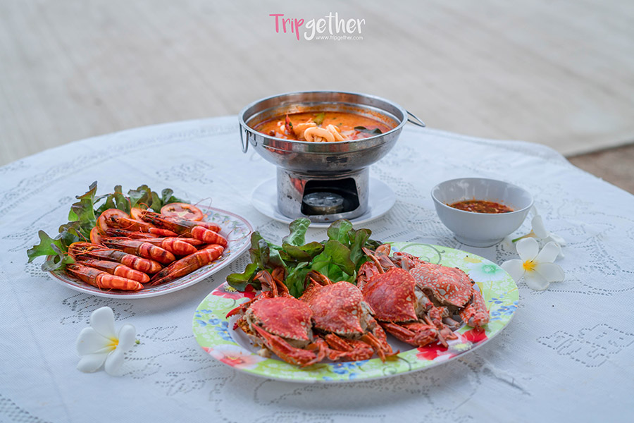 ต้มยำกุ้งน้ำข้น ราคา 200 บาท, กุ้งอบเกลือ ราคากิโลกรัมละ 550 บาท, ปูนึ่ง ราคากิโลกรัมละ 600 บาท อาหารทะเลสดๆ ราวกับยกทะเลมาไว้บนโต๊ะ นอกจากความสดใหม่แล้วรสชาติก็ยังอร่อยสมคำล่ำลืออีกด้วย