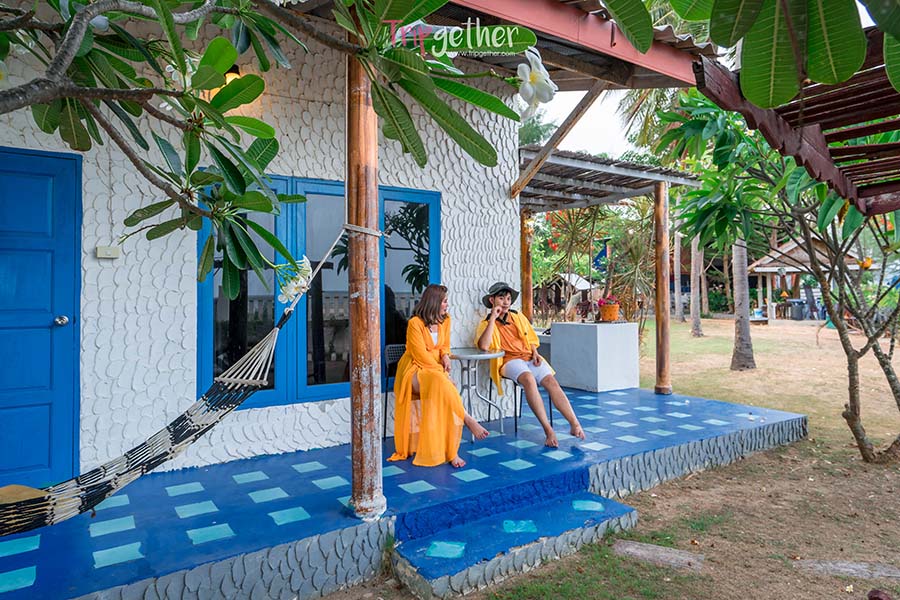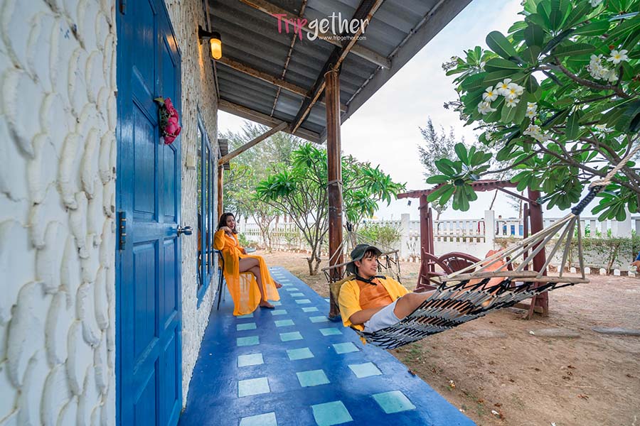 ด้านหน้าห้องยังมีพื้นที่ให้นั่งชิลล์ๆ รับลมเย็นๆ จากทะเล