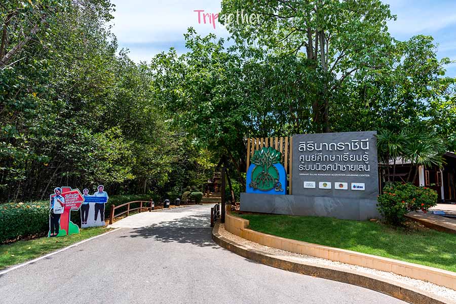 ทริปนี้กินจนพุงจะแตกแล้วเราเลยหาที่เที่ยวกันสักหน่อยและที่เที่ยวที่เราปักหมุดไปก็คือ ศูนย์ศึกษาเรียนรู้ระบบนิเวศ ป่าชายเลน สิรินาถราชินี ป่าชายเลนที่อุดมสมบูรณ์ที่เดิมทีเคยเป็นบ่อกุ้งร้างและไม่มีต้นไม้สีเขียวขึ้นอยู่เลย ปัจจุบันได้ทำเป็นศูนย์การเรียนรู้และสถานที่ท่องเที่ยวเชิงอนุรักษ์ ที่นี่ เปิดตั้งแต่เวลา 08.30 – 16.00 .