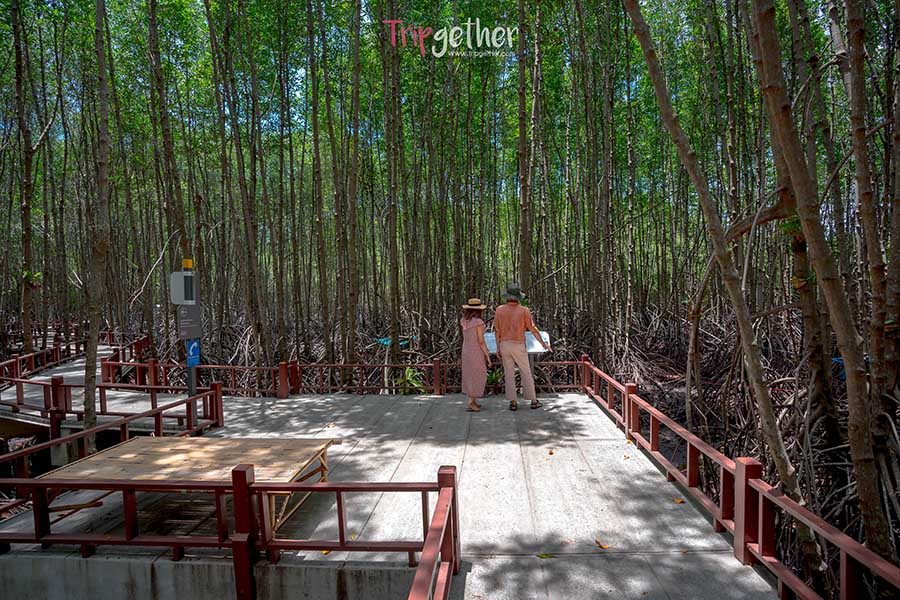 บรรยากาศด้านในก็ร่มรื่นสุดๆ เหมาะกับการมาเที่ยวพักผ่อนในวันหยุด แถมยังได้เห็นสัตว์ต่างๆ ที่ดำรงชีวิตอยู่ในป่าชายเลนซึ่งมีทั้งปูและปลาตีน นอกจากจะได้สัมผัสความร่มรื่นแล้ว ยังได้ความรู้เกี่ยวกับระบบนิเวศน์อีกด้วย