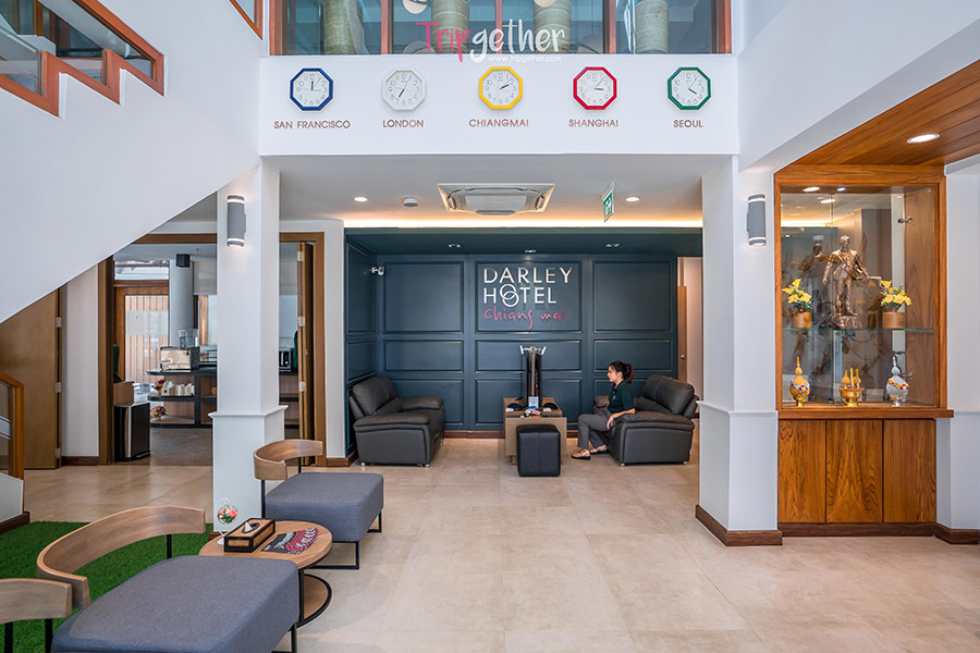 และแล้วเราก็มาถึงโรงแรม Darley Hotel Chiangmai ที่พักเปิดใหม่สไตล์โมเดิร์นที่ตั้งอยู่ในตัวเมืองเชียงใหม่ อยู่ใกล้ทั้งที่กิน ที่เที่ยวและแหล่งช็อปปิ้งมากมาย ซึ่งแต่ละที่ถือได้ว่าเป็นแลนด์มาร์คยอดฮิตของเมืองเชียงใหม่เลยก็ว่าได้ ตัวโรงแรมตกแต่งด้วยสไตล์โมเดิร์นตั้งแต่ภายนอกโรงแรมจนไปถึงภายในโรงแรม และยังมีพนักงานที่คอยให้การต้อนรับอย่างอบอุ่นอีกด้วย