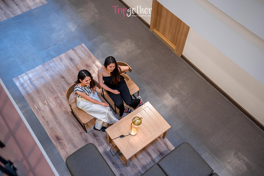 และยังมีมุมให้นั่งพักผ่อนและนั่งทำงานที่ชั้นสองอีกด้วย ใครที่อยากหามุมสงบๆ นั่งชิลล์หรือนั่งทำงานต้องมาที่มุมนี้เลย