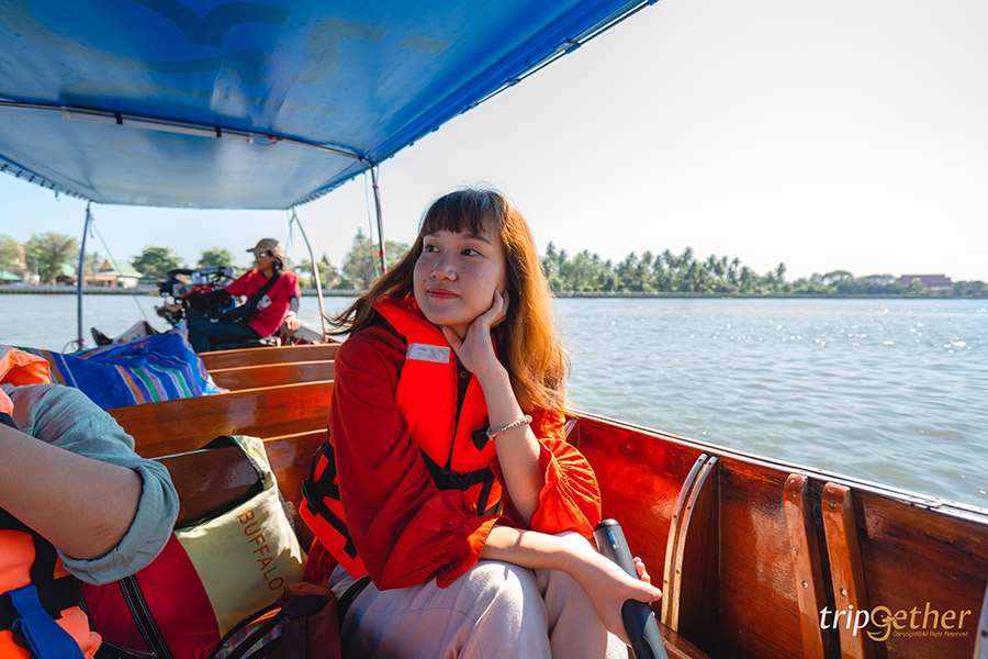 บรรยากาศชิลล์ๆ ระหว่างล่องเรือไปตามลำน้ำ เต็มไปด้วยเสน่ห์ความคลาสสิกของบ้านไม้ริมน้ำ