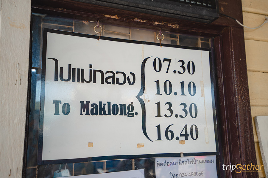 -ค่าโดยสารจากสถานีรถไฟบ้านแหลม – สถานีรถไฟแม่กลอง คนละ 10 บาท