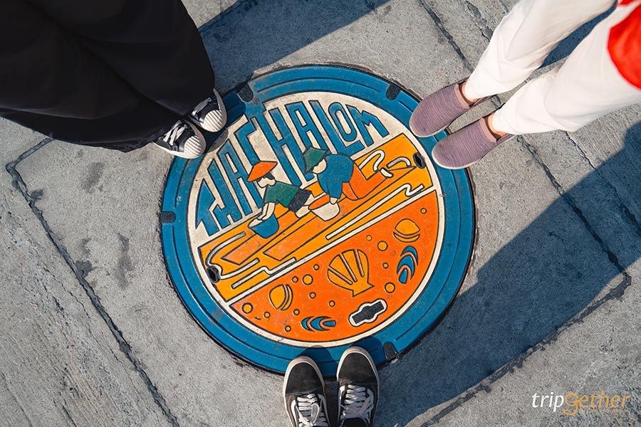 นั่งเรือข้ามฟากเพียง 2 นาทีก็มาถึงฝั่งท่าฉลอมแล้ว เดินไปตามทางเรื่อยๆ โดยเราจะเดินไปตามป้ายทางไปรถไฟบ้านแหลม บอกเลยว่ามาแล้วรับรองไม่หลงแน่นอน ระยะทางก็ไม่ได้ไกลมากสามารถเดินได้สบายๆ อีกทั้งยังมีกราฟฟิตี้สวยๆ ให้ถ่ายรูปเช็คอินระหว่างทางด้วย หรือถ้าใครไม่อยากเดินจริงๆ ก็มีรถสามล้อไปส่งถึงสถานีรถไฟ ราคาอยู่ที่ 20 – 30 บาท