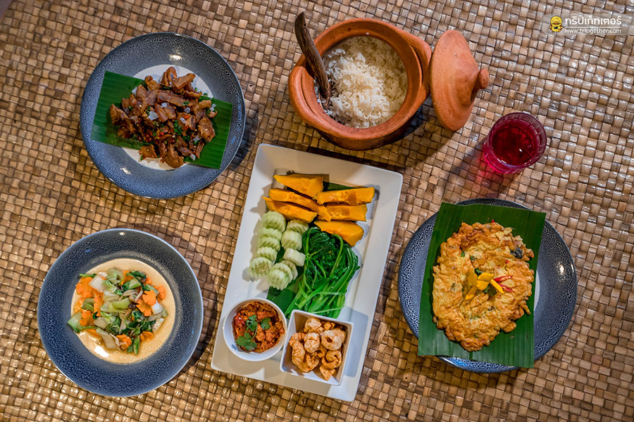 ส่วนมื้อเย็นก็ไม่ต้องไปไหนไกล เรามาฝากท้องกันที่ร้านอาหารของที่พัก ฟินกับเมนูอาหารพื้นเมืองกับเมนูอร่อยเด็ดที่ต้องแนะนำ น้ำพริกอ่องนครน่าน ไข่เจียวแหนมดอกโสน และหมูทอดพริกเกลือ เสิร์ฟมาพร้อมกับข้าวสวยร้อนๆ