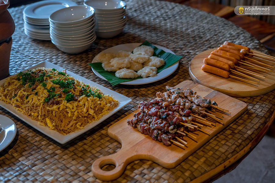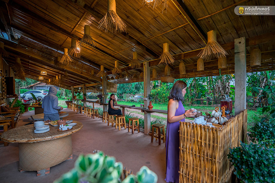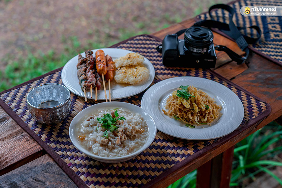 หลังชมวิวสายหมอกกันจนอิ่มใจ ก็ได้เวลารับประทานอาหารเช้า โดยทางที่พักจะจัดเป็นไลน์บุฟเฟ่ต์แบบบ้านๆ มีเมนูอาหารอาหารให้เลือกอร่อยกันหลายเมนูทีเดียว