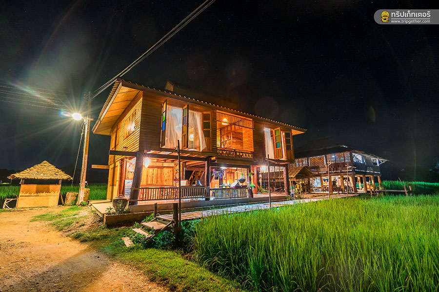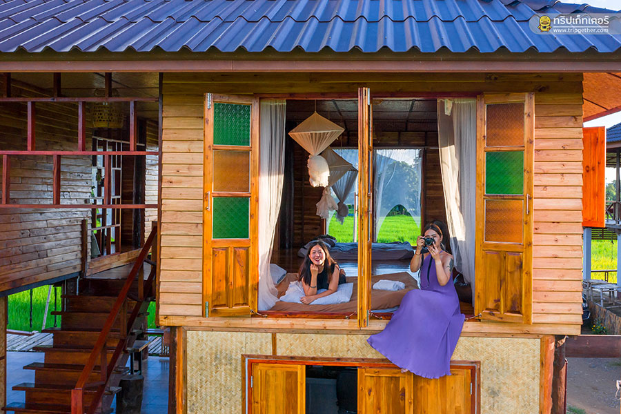 นั่งชมวิวทุ่งนากันจนเพลิน ก็ถึงเวลาเดินทางเข้าที่พักของเราในคืนนี้กันที่ “โรงเรียนชาวนาบ้านศิลาเพชร โฮมสเตย์“ ที่พักกลางทุ่งนาบรรยากาศสบายตา โอบล้อมไปด้วยสีเขียวที่สดชื่นรอบด้านที่ไม่ว่าจะมองไปทางไหนก็รู้สึกสบายใจอย่างบอกไม่ถูก โรงเรียนชาวนาบ้านศิลาเพชร โฮมสเตย์ โทร. 089 999 7737