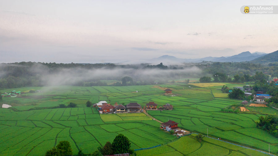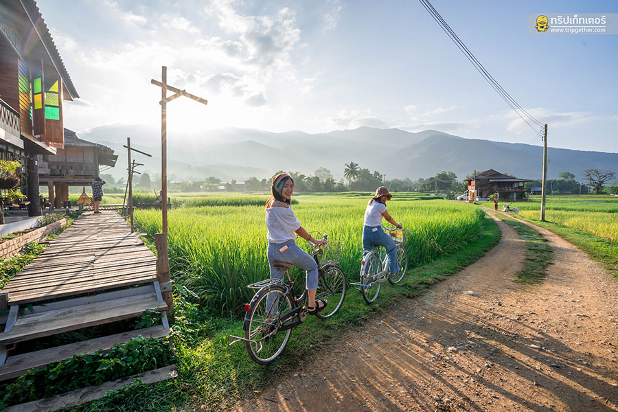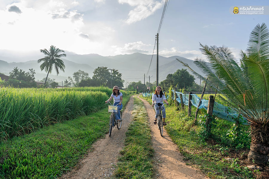 วันนี้ตื่นมาพร้อมกับหมอกขาวทั่วโฮมสเตย์ แค่เปิดหน้าต่างก็ได้เห็นบรรยากาศฟินๆ ได้จากบนเตียงกันเลย นอกจากนี้ที่นี่ยังมีจักรยานให้ยืมมาปั่นชมวิวทุ่งนากันแบบฟรีๆ พร้อมสูดอากาศที่แสนบริสุทธิ์กันให้เต็มปอดก่อนกลับกรุงเทพ