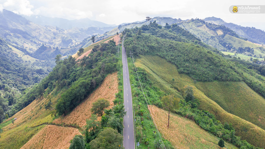 จากบ่อเกลือ ขับรถมุ่งหน้าเดินทางกันต่อไปยังอำเภอปัว โดยใช้เส้นทางหลวงหมายเลข 1256 หรือที่หลายคนเรียกจนติดปากว่าถนนลอยฟ้าปัว-บ่อเกลือ ตลอดเส้นทางมีมุมสวยๆ ให้เราได้ลงมาเก็บภาพกันเพียบไม่ว่าจะเป็นช่วงถนนลอยฟ้า และจุดชมวิว 1715