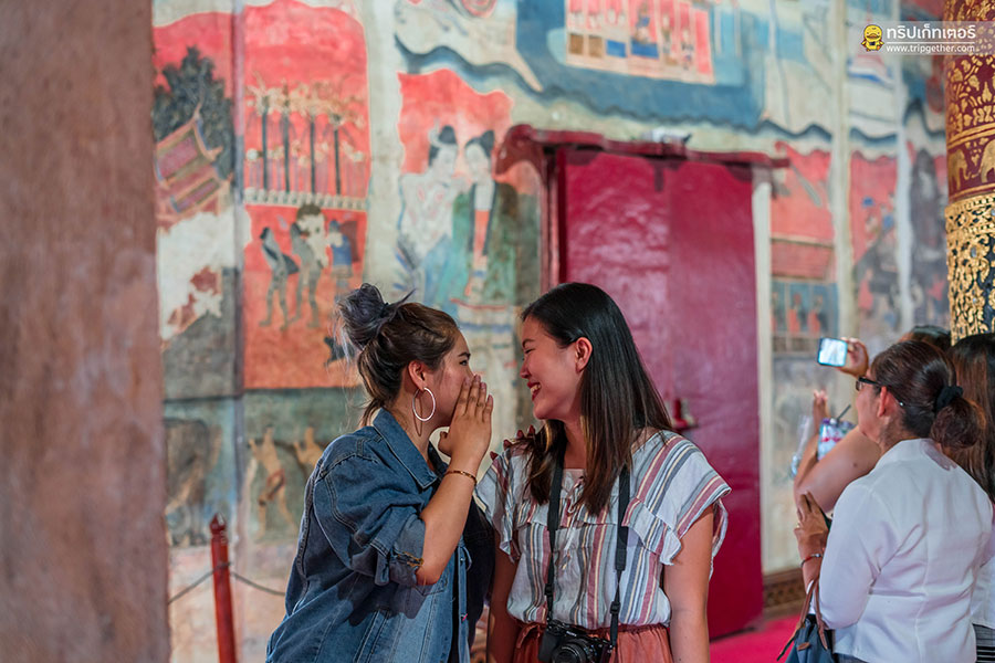 เริ่มต้นการเดินทางจากกรุงเทพ ไปยังจังหวัดน่านด้วยสายการบินชั้นประหยัด ซึ่งใช้เวลาเดินทางประมาณ 1 ชั่วโมงนิดๆ เราก็วาร์ปมาถึงจุดเช็คอินแรกของเราในทริปนี้ที่ วัดภูมินทร์ เที่ยวชมความงดงามของภาพจิตกรรมฝาผนัง และไหว้พระ ขอพร และถ่ายรูปมุมยอดฮิตคู่กับภาพไฮไลท์ “ปู่ม่านย่าม่าน” หรือ ภาพกระซิบรักบันลือโลก