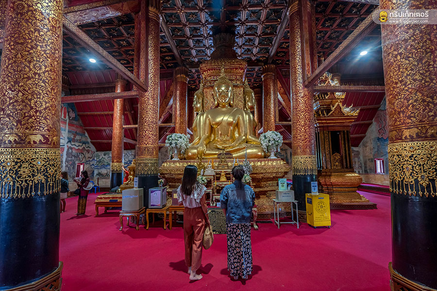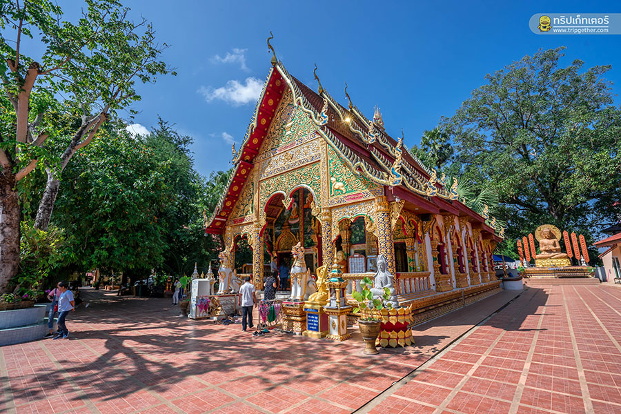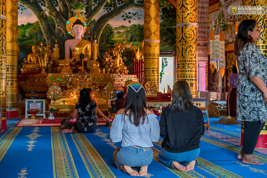 และก่อนกลับกรุงเทพวันนี้เราขอแวะเช็คอิน ไหว้พระขอพระกันอีกสักที่สองที่ มาเริ่มต้นกันที่ วัดภูเก็ต ไฮไลท์ที่นักท่องเที่ยวทุกคนต้องแวะมาชมความงามของจิตรกรรม สถาปัตยกรรมสไตล์ล้านนา และสักการะขอพรหลวงพ่อแสนปัว เพื่อความเป็นสิริมงคล แถมที่นี่ยังมีลานกว้างที่สามารถขึ้นมาชมและถ่ายรูปกับวิวทุ่งนาได้อีกด้วย