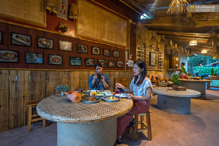 ก่อนจะปิดท้ายทริปวันนี้ด้วยอาหารเหนือรสลำบนเถียงนา กับเมนูบ้านๆ ในชุดปิ่นโตที่เสิร์ฟมาบนขันโตก ราคาชุดละ 300 บาท ประกอบไปด้วย น้ำพริกอ่อง น้ำพริกหนุ่ม ไข่เจียว ปลาย่าง แคบหมู ผัดผัก และต้มยำไก่ในสไตล์รสมือแม่ ที่อร่อยแบบไม่ต้องหรูหรา หรือใครอยากจะสั่งเมนูอื่นๆ เพิ่มเติมก็สามารถแจ้งได้เลย มื้อนี้เราสั่งไส้อั่วมาเพิ่ม ในราคา 50 บาทเท่านั้น