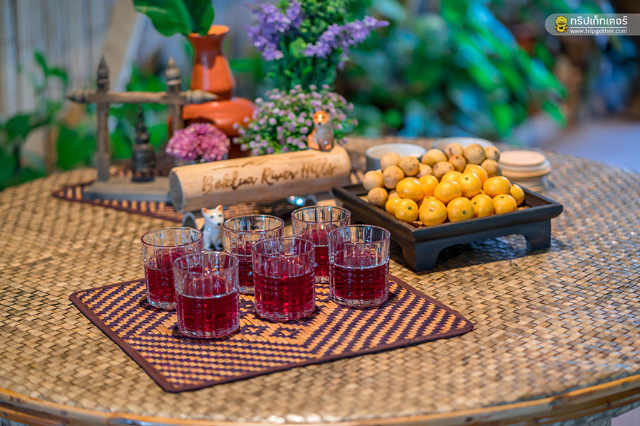 จากตัวเมืองน่านประมาณ 2 ชั่วโมงนิดๆ เราก็มาถึงยังที่พักของเราในคืนนี้ ก้าวแรกที่มาถึงทางที่พักต้อนรับด้วย Welcome Drink น้ำสมุนไพรสุดชื่นใจ