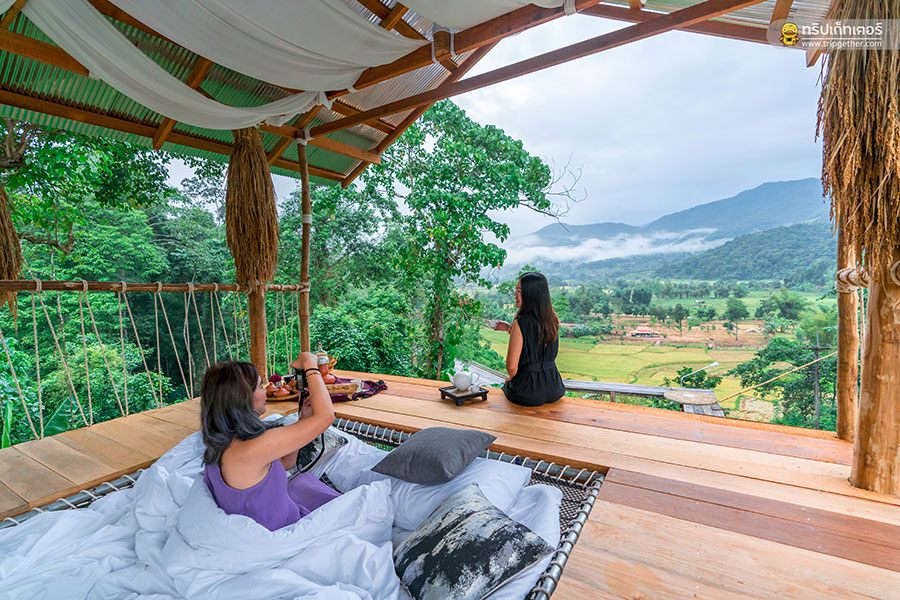 เช้าวันที่สอง เราตื่นมารับอากาศที่แสนบริสุทธิ์ นั่งจิบชาร้อนๆ มองวิวภูเขากันแบบฟินๆ กับมุมไฮไลท์จุดชมสไตล์บาหลี ที่แค่พาตัวเองมานั่งตรงนี้ก็ได้รูปสวยๆ กันเพียบเลยค่ะ