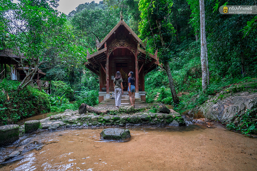 จัดหนักจัดเต็มกับมื้อกลางวันที่ร้านข้าวซอยกลอยใจ ก็ขอเดินย่อยแวะเที่ยวถ่ายรูปริมลำธาร ก่อนจะเดินลัดเลาะตามตรอกซอกซอยมายัง วัดแม่กำปอง หรือ วัดคันธาพฤกษา วัดเก่าแก่คู่บ้านคู่เมืองของชาวแม่กำปองมานานกว่า 90 ปี