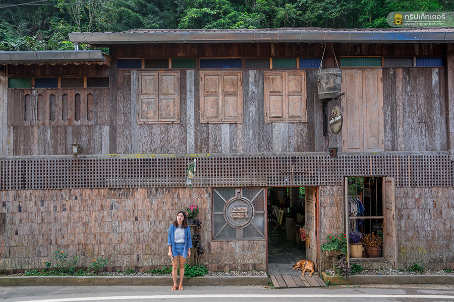 จุดแรกที่เรามาถึงคือบริเวณพื้นที่กลางตลาดบ้านแม่กำปอง ไฮไลท์ของที่นี่คือการได้มาหามุมถ่ายรูปสวยๆ กับผนังบ้านไม้เก่าที่เป็นเอกลักษณ์ ซึ่งด้านในบ้านหลังนี้จะเปิดเป็นคาเฟ่เล็กๆ ในชื่อ ลุงปุ๊ด&ป้าเป็ง และนอกจากจะเป็นร้านกาแฟแล้ว ที่นี่ยังมีของฝากให้ซื้อติดไม้ติดมือกลับบ้านด้วยนะ ลุงปุ๊ด&ป้าเป็ง Coffee แม่กำปอง ร้านเปิดทุกวัน ตั้งแต่ 08.00-18.00 น. โทร.086 198 1010