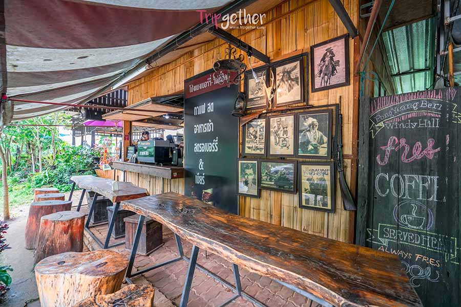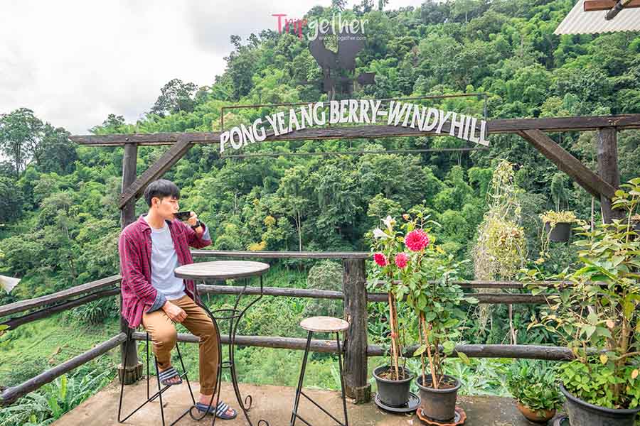 เช็คอินชิคๆ กันไปแล้ว ขอไปพักผ่อนแบบสโลว์ไลฟ์ให้ร่างกายได้รีบูสกันสักหน่อย จากนิมมานเราแว้นไปขึ้นดอยกันบ้าง Next Station! ม่อนแจ่ม ตั้งอยู่ในอำเภอแม่ริม ช่วงกึ่งกลางของจังหวัดเชียงใหม่ ติดกับอำเภอเมืองใช้เวลาเดินทางไม่ถึงชั่วโมง ก็เหมือนได้หลุดเข้ามาอีกความรู้สึกหนึ่งกันแล้ว ขับมาเรื่อยๆ แดดเริ่มแรง ขอแวะจิบกาแฟแก้ง่วงอีกสักหน่อยที่ โปงแยง เบอร์รี่ วินดี้ฮิลล์ ร้านกาแฟเล็กๆ บนหน้าผาที่บริการทั้งกาแฟ น้ำผลไม้ รวมถึงอาหารตามสั่ง แถมยังมี Free WIFI ให้เช็คอินประเดิมกันก่อนได้เลย