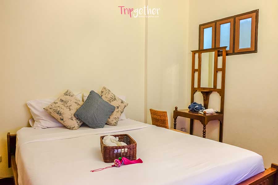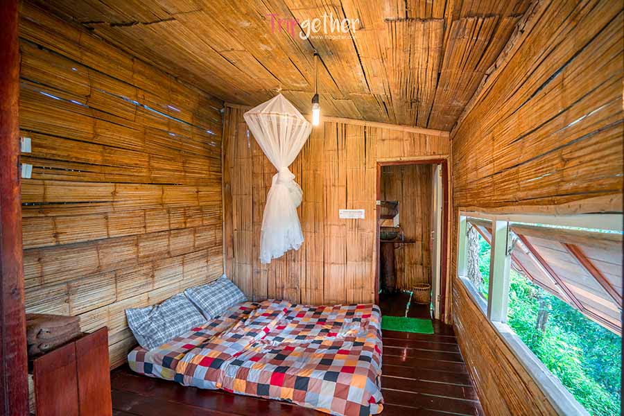 ภายในห้องเรียบง่าย มีเครื่องนอน มุ้ง และกาน้ำร้อนพร้อมเซตกาแฟเตรียมไว้ให้ เรียกว่าเป็นเวลาที่ให้ได้คิดทบทวนอยู่กับตัวเองและธรรมชาติได้เป็นอย่างดี