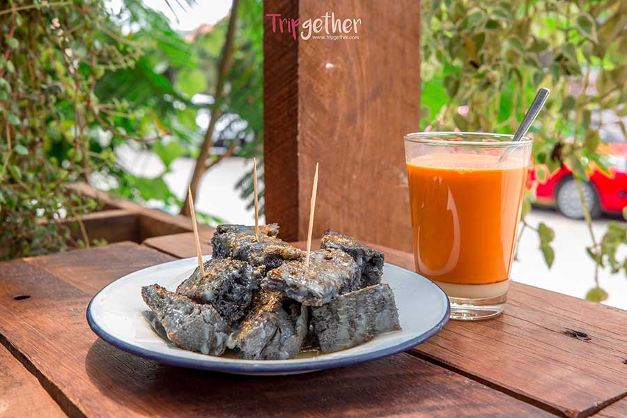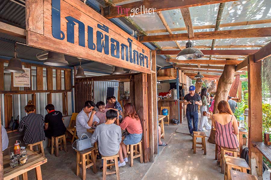 ตื่นเช้ามาในเดือนกันยาอากาศเริ่มเย็น เราวางแผนไว้ว่าจะไปหาอะไรร้อนกิน จากนิมมานเราตรงไปที่ร้าน โกเผือกโกดำ ใช้เวลาเดินทางราว 15 นาที(รวมหลงทางแล้ว) ตัวร้านเป็นเพิงเล็กๆ ใต้ต้นไม้ที่ดีไซน์ได้อย่างน่ารัก ภายในมีโต๊ะให้นั่งประมาณ 20 โต๊ะ ส่วนมุมเก๋ต้องนั่งบาร์ชมนกชมไม้